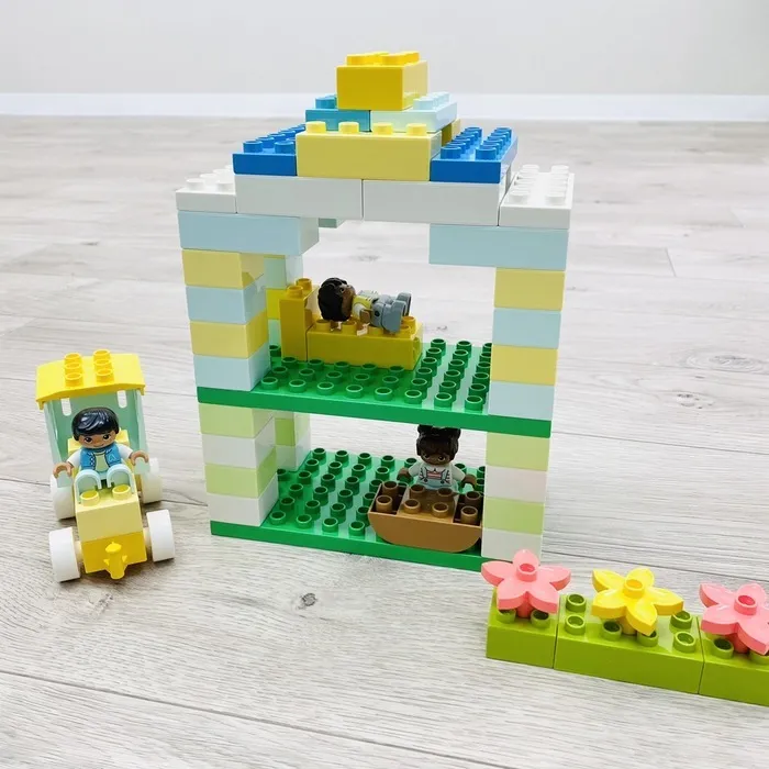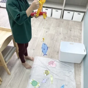 2階を作ったりして建物の柱の必要性などを知ったり、ここはキッチンでここはお風呂など部屋の役割に触れながらごっこ遊びを楽しみます