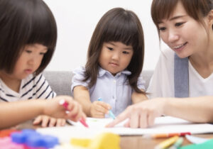 「なべなべそこぬけ」のふれあい遊びを家族やお友だちと一緒に楽しんだ後、おうちには何があるか、どんなものがあったらいいかを話し合い、”時計・テレビ・ベット・台所・お風呂”などたくさん出てきました。