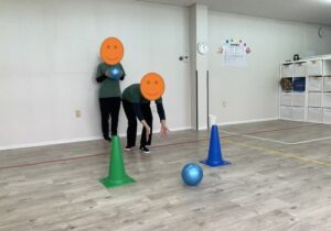 お互いを見て笑い合う子どもたちの姿はとても微笑ましいです。