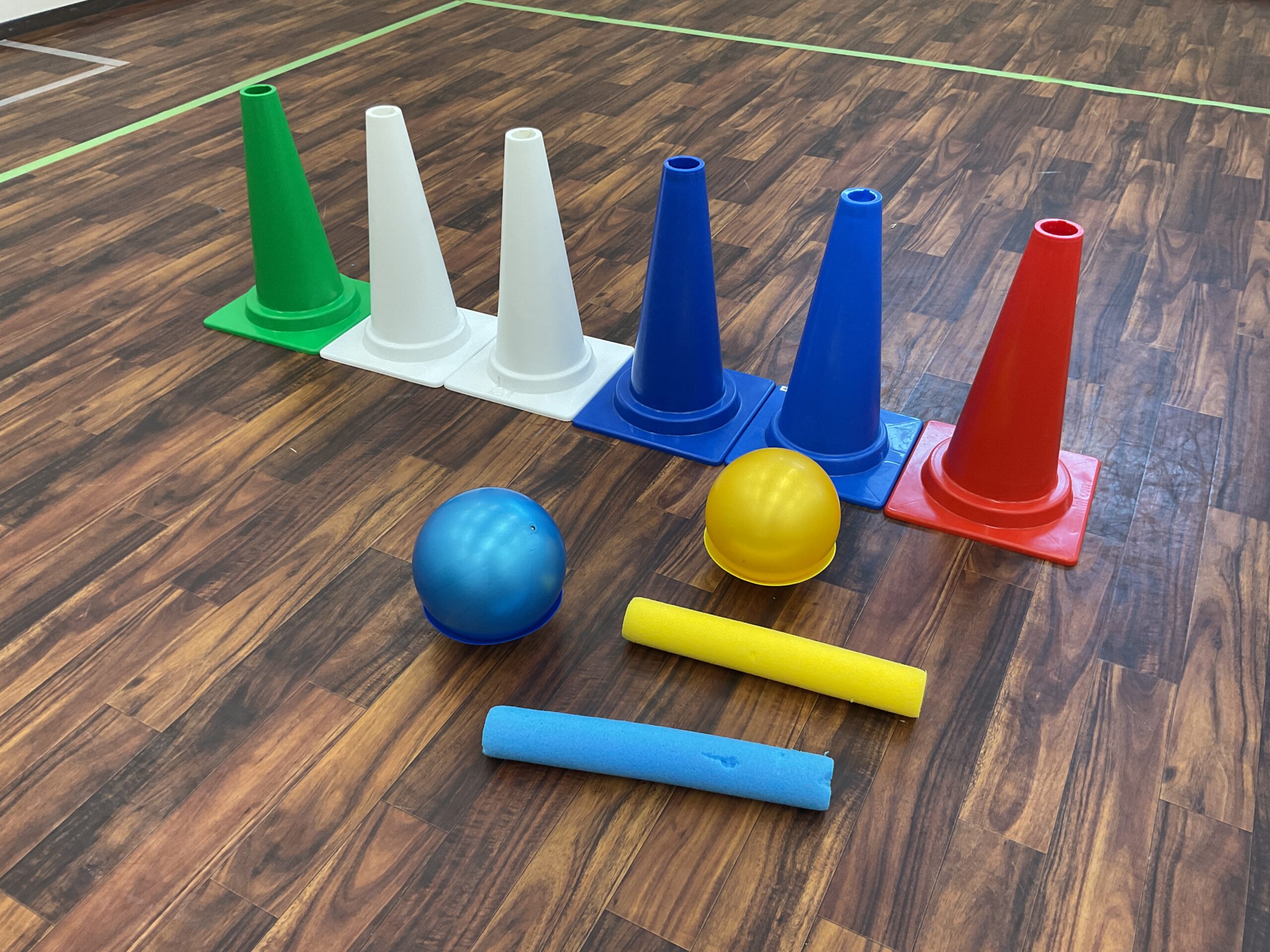 反応反射プログラムではスティックやボール等の道具を使って目標に当てたり、避けるといった人や物の動きを見て行動していきます。