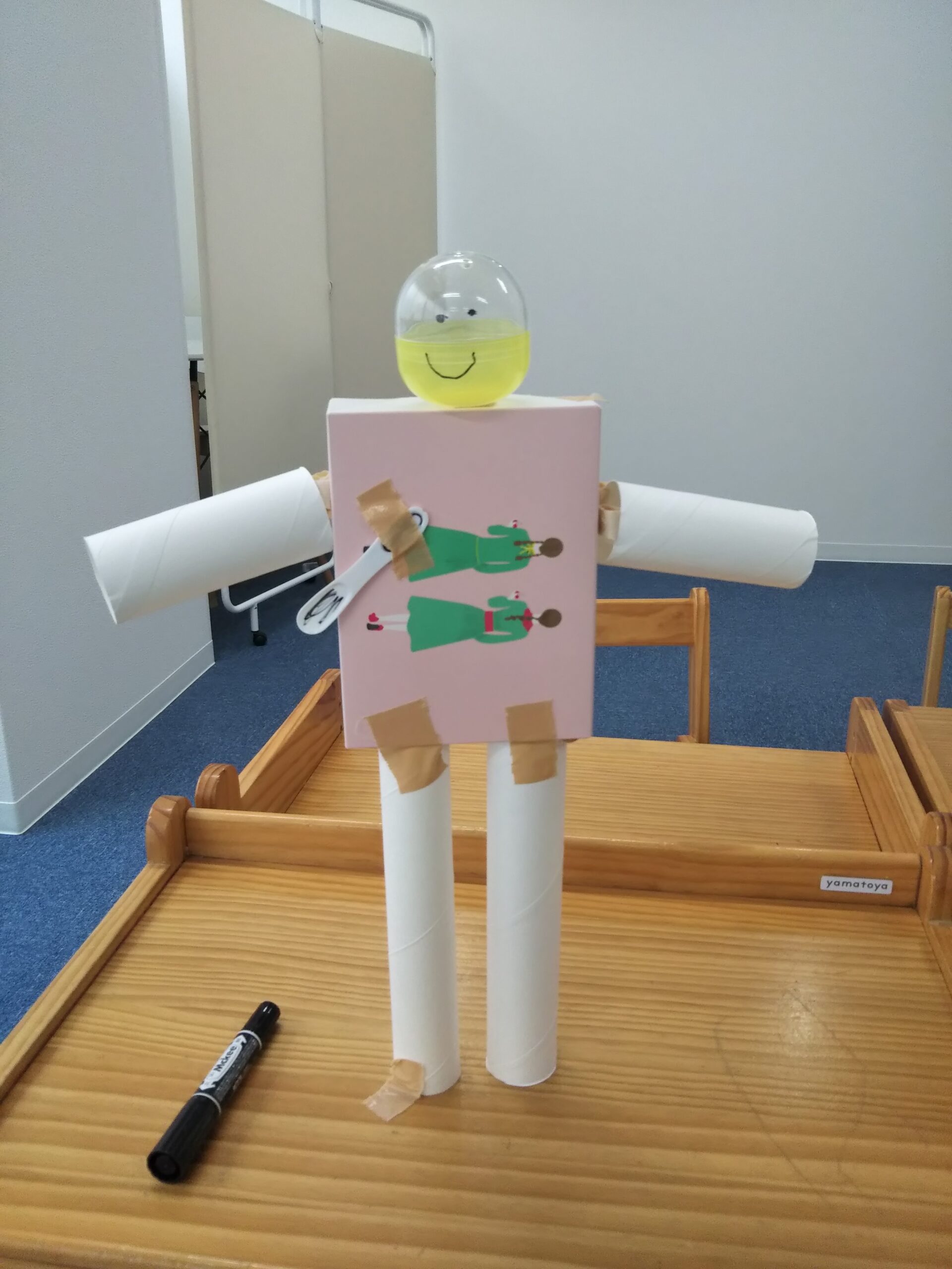 今回は、想像力や表現力、工夫する力を育てることを目的に、廃材を使った“人型ロボットづくり”に取り組みました。