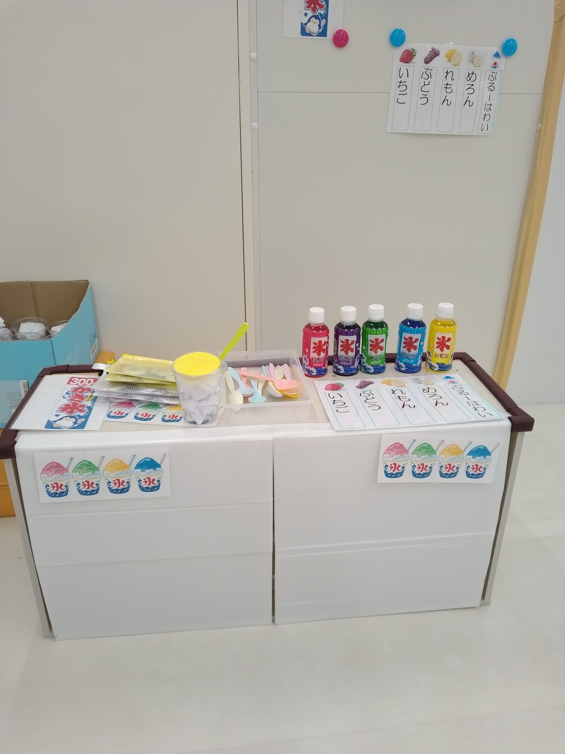 工作、ブロック、STEAMのコマ回し機、ままごと遊び(かき氷、美容室、お医者さんごっこ