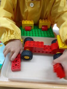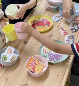 大人に手を添えてもらうことで、スタンプを押す力加減を知り、次はひとりでできるようになり「できた〜」と笑顔いっぱいになりました。