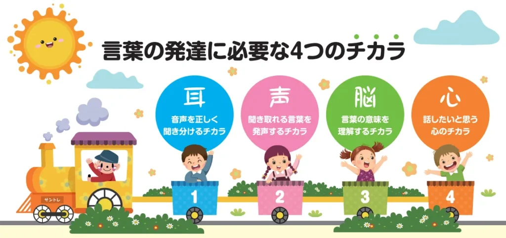 言葉の発達に必要な耳、声、脳、心の4つのチカラを育む独自プログラム