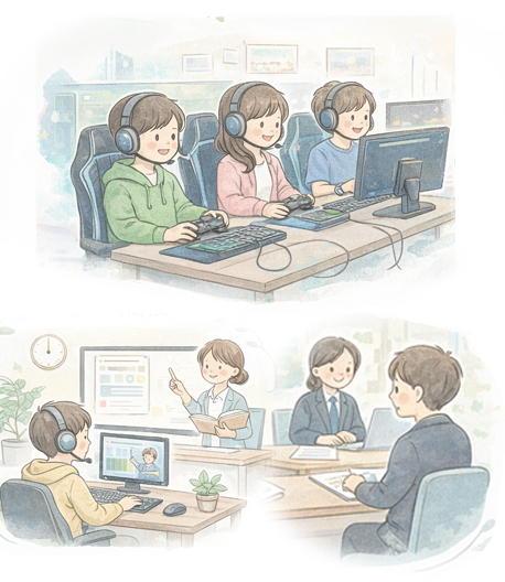 eスポーツ大会や、高卒認定、就業・就職へのサポートご相談が可能です。