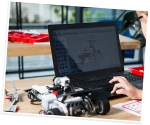 ロボットを組み立て、プログラムを作り動かすことで、イメージと実際の動きを比較して検証できる。その過程において試行錯誤の繰り返しが問題解決能力を育みます。
