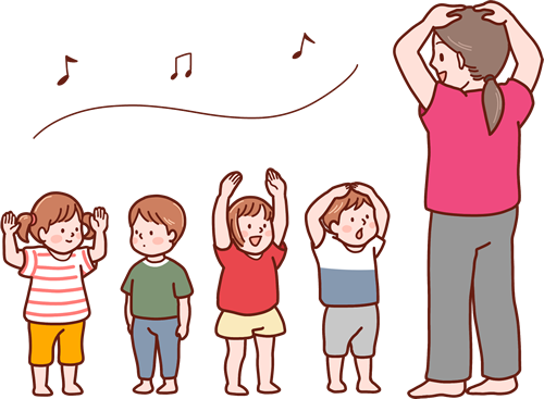 音楽やリズムに合わせて自由に楽しく表現していくリトミックを通して、心身のバランスを整えながら豊かな感性を育みます。