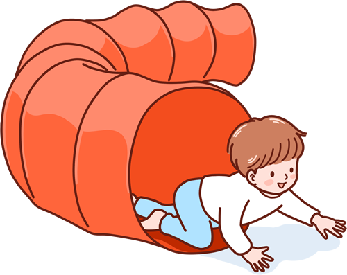 日常生活に困りごとが生じてくる感覚統合機能の発達を意識しながら遊ぶことで、工夫することや計画を立てるといった「考える力」に結びつくうえ、自信を持って行動に移せるようになり自然と前向きに挑戦することができるようになります。 この「手で触れる、目で見る、頭で考える」を取り入れ、年齢に合わせた目標や支援内容に加え、子どもたちが自ら考えて 取り組む能動的な活動を重視したプログラムです。
