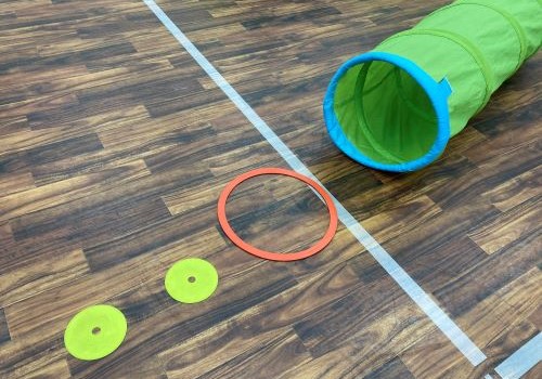 SMASPO箕面では、リングやフラットマーカーを用いて順番を視覚的に分かりやすくしたり、順番を交代するときも道具を次のお友だちに渡して交代したりしています。