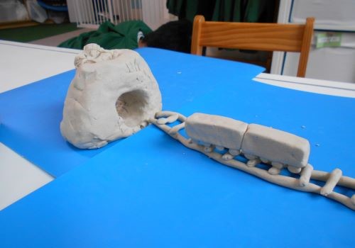 粘土のプログラムの紹介です。道具や指を使ってトンネルを掘りました。