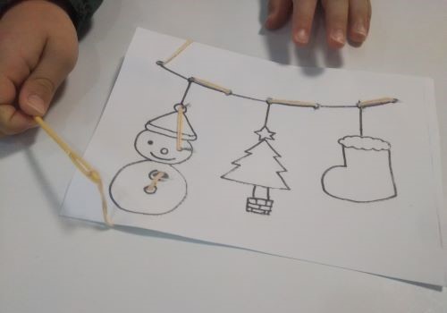 普段使わない針と糸を使って紙を縫うペーパーソーイングの様子です。